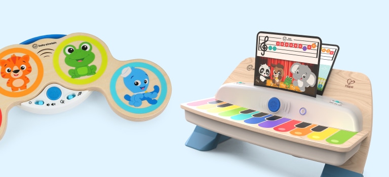 Realizzato con la premiata tecnologia Magic Touch, questo giocattolo in legno mette la musica a portata di mano del bambino… senza bisogno di pulsanti o tasti! Il design portatile di questa tastiera giocattolo lo aiuta ad esprimersi ovunque e si ripone ordinatamente quando non è in uso. Le possibilità musicali sono infinite nella modalità Freeplay e il bambino può alternare suoni di piano, xilofono, hip hop e batteria. La nostra tecnologia Play Assist aiuta il bambino a scoprire un nuovo brano seguendo le luci e la modalità Silly attiva effetti sonori a profusione. Questo giocattolo per lo sviluppo del bambino introduce colore e note musicali mentre esplora cause ed effetti attraverso il suono. Il vostro musicista in erba rimarrà stupito dal modo in cui le dita delle mani o dei piedi possono creare musica con un semplice tocco!