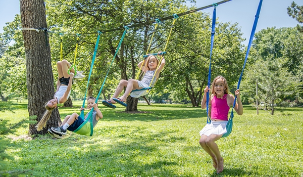 La Corda avventura entusiasma i bambini che, a turno, afferrano l'impugnatura a T e rotolano lungo la corda tra due alberi distanti tra loro fino a 10 metri. Simile a una semplice Zipline, utilizza una cinghia da 60cm e un rullo resistente. Attacca il punto di partenza un po' più in alto dell'albero di arrivo e lascia che l'avventura abbia inizio!