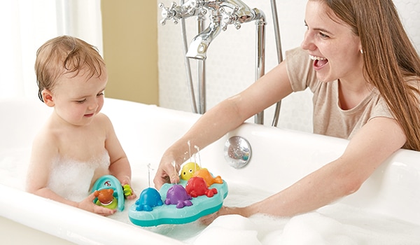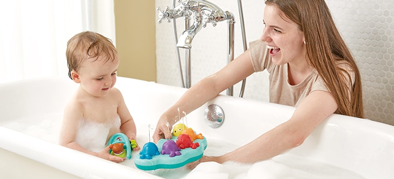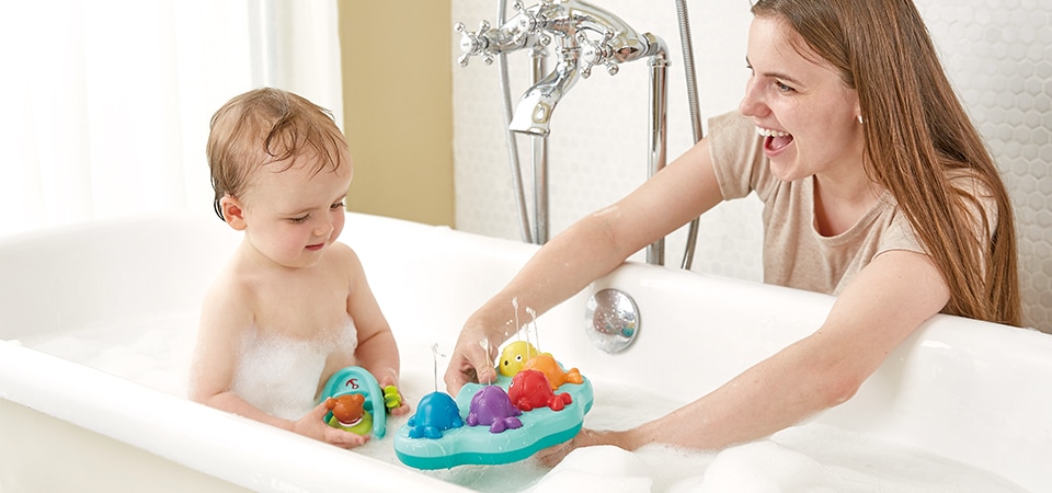 Rendi magico il momento del bagnetto con questa meravigliosa fontana musicale delle balene! Scegli se guardare le fontane danzare al suono della musica oppure suonare ciascuna balena come i tasti di un pianoforte! Attaccala semplicemente sul fondo della vasca con la ventosa in dotazione.